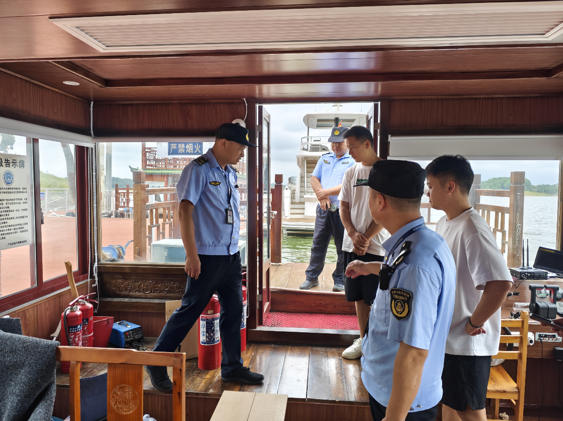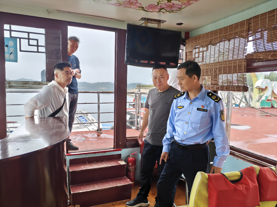 中秋、国庆即将来临,通航景区涉水旅游将迎来高峰期,为切实保障游客的生命财产安全,科学有效防范水上交通安全事故,维护节假日期间和谐稳定的社会环境,近日,随州市交通运输综合执法支队联合市交通物流发展中心,对我市重点渡口、涉客船舶进行了专项检查,全力筑牢节假日期间水上交通安全防线。