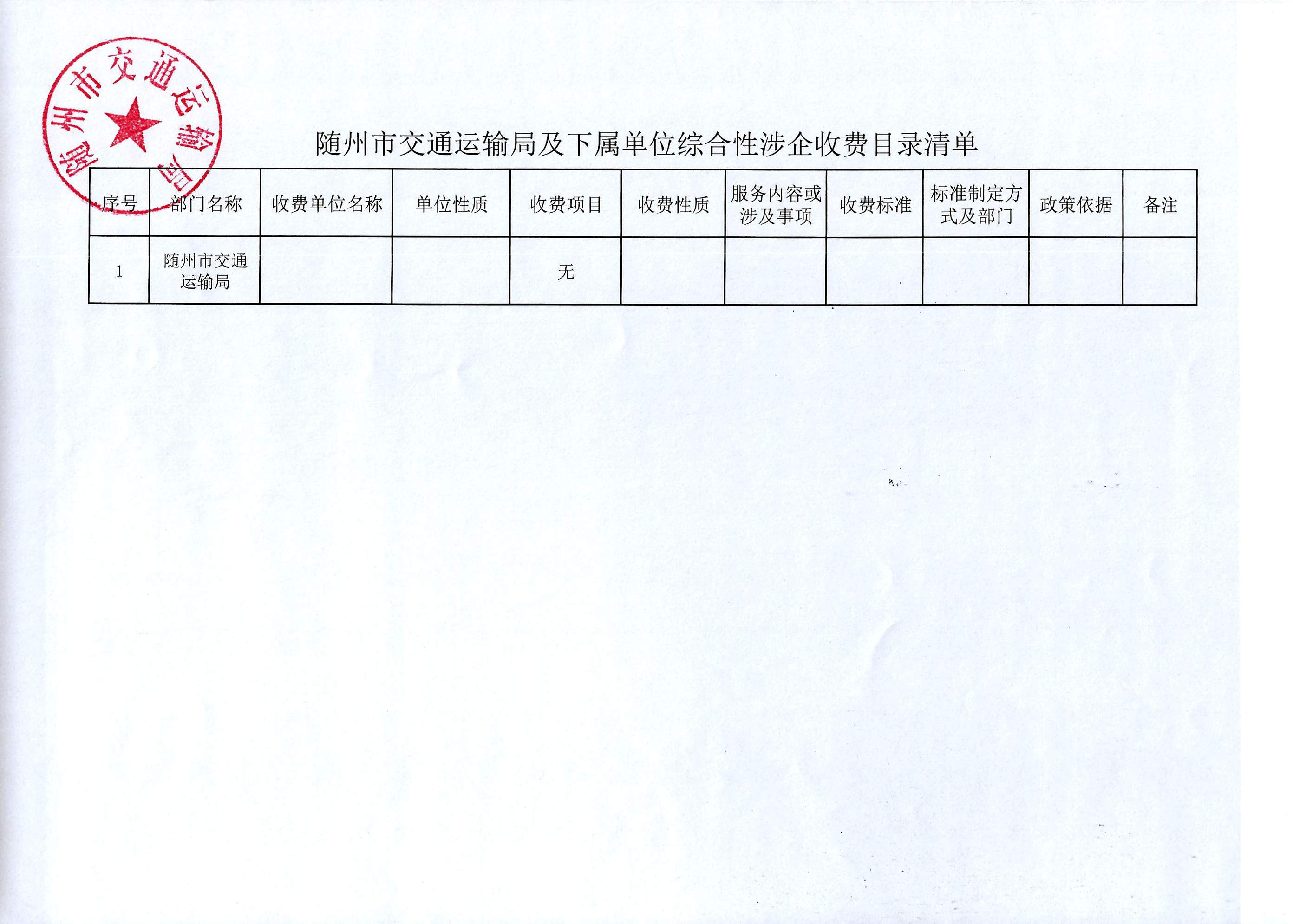 随州市交通运输局及下属单位综合性涉企收费目录清单
